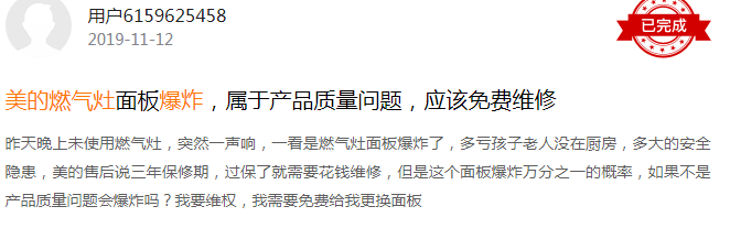然而事關(guān)美的燃?xì)庠畋ǖ氖鹿始巴对V,趙先生的“千分之一”可不是個(gè)案。