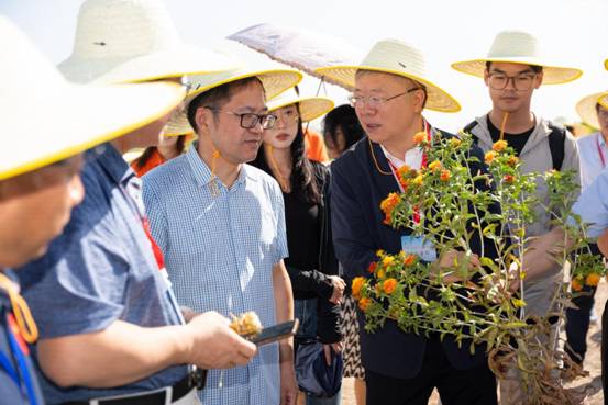 中國工程院院士、溫州醫(yī)科大學(xué)校長李校堃向?qū)<液蛶熒鷤冎v解紅花研究項(xiàng)目