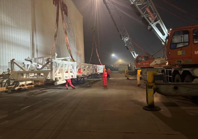 5月2日晚7點,經過團隊多日的準備,貨輪準時從中國港口起航,駛向波斯灣??缭揭粋€多月的海上航程后,6月16日,貨物安全抵達科威特港。隨后當地收件團隊接到清關與提貨指令,正本提單快速交接,手續(xù)順利完成,大型井架設備如約送到客戶手中。整個運輸過程像一場流暢的接力賽,沒有一絲延誤。目前,二期項目已在規(guī)劃中,預計9月正式啟動。