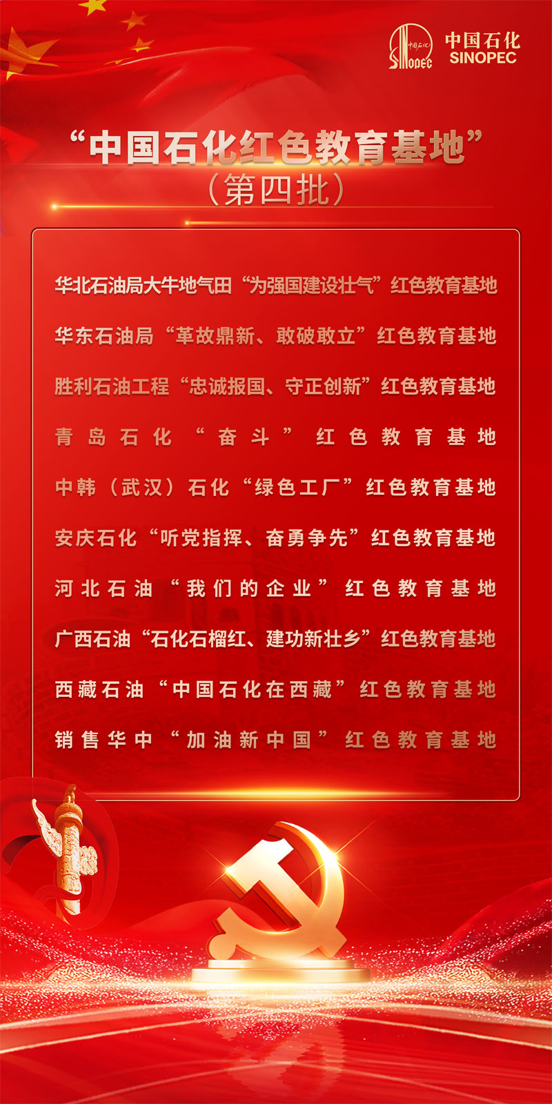 中國(guó)石化發(fā)布第四批紅色教育基地