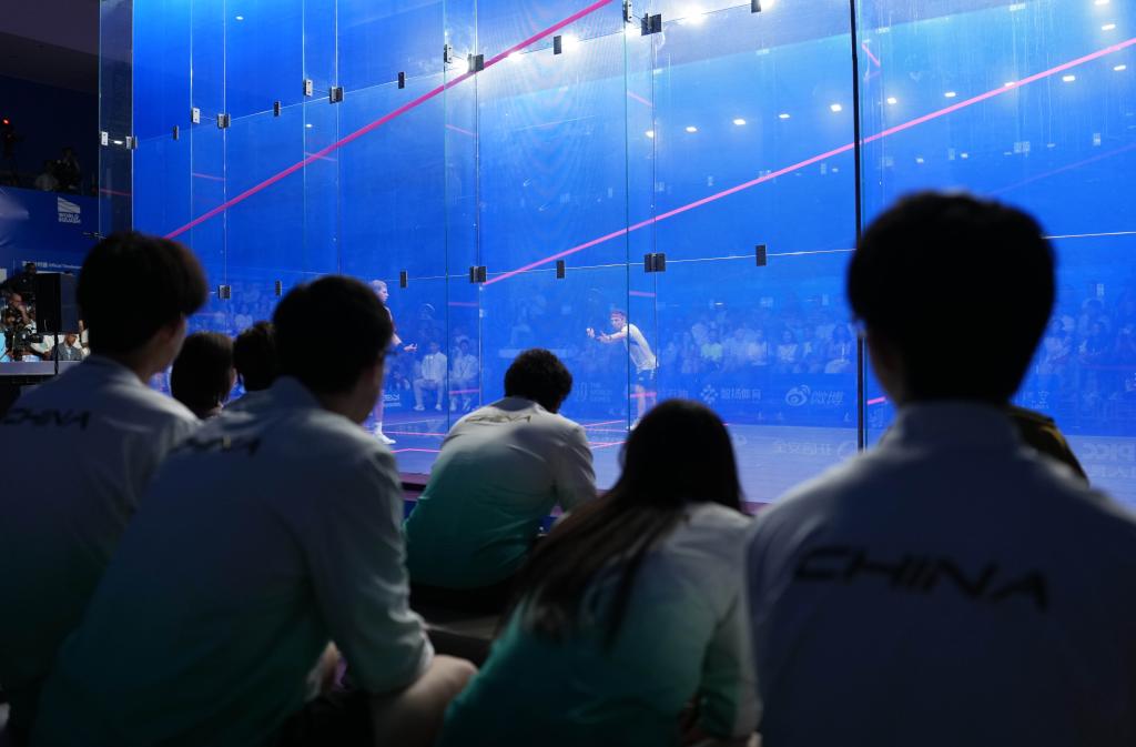 8月12日,中國(guó)壁球隊(duì)在場(chǎng)邊觀看男子單打決賽。當(dāng)日,在2025年成都世運(yùn)會(huì)壁球男子單打金牌賽中,法國(guó)選手克魯安戰(zhàn)勝匈牙利選手福爾考什,奪得冠軍。新華社記者 李旭倫 攝