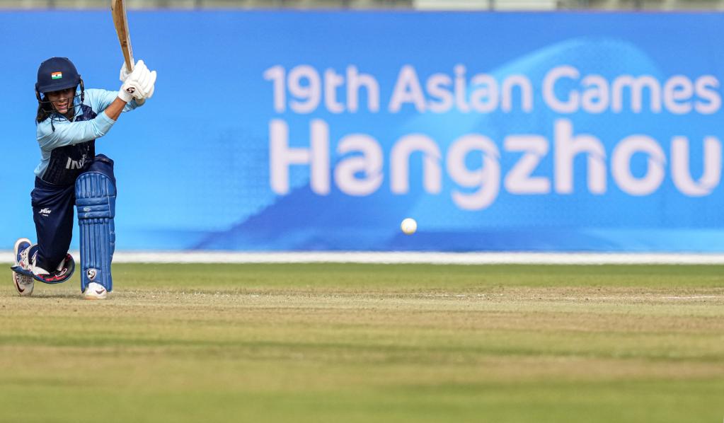 2023年9月25日,印度隊(duì)球員杰米瑪·杰茜卡在比賽中。當(dāng)日,在杭州亞運(yùn)會(huì)板球項(xiàng)目女子決賽中,印度隊(duì)?wèi)?zhàn)勝斯里蘭卡隊(duì),奪得冠軍。新華社記者 吳壯 攝