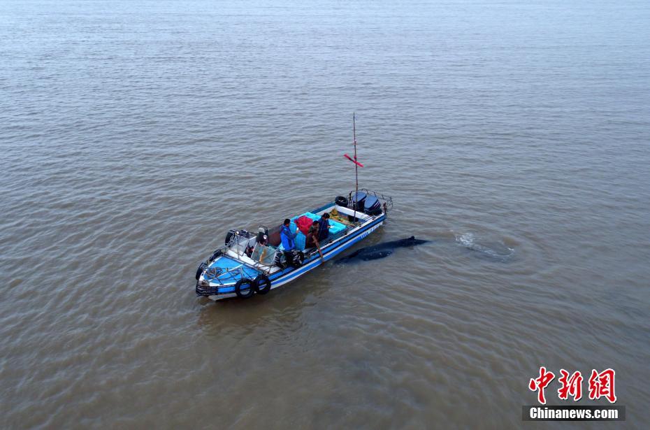 3噸重座頭鯨擱淺啟東海灘 營(yíng)救5小時(shí)脫困