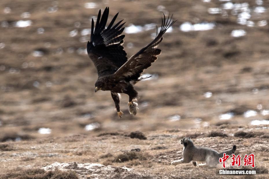 兔猻捕捉到鼠兔 卻遭草原雕“打劫”