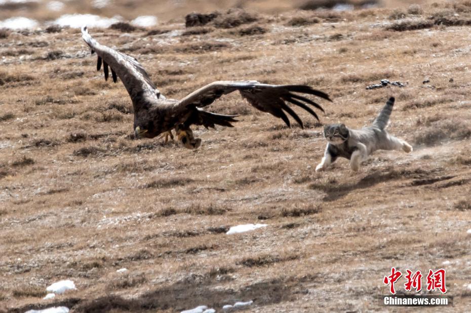 兔猻捕捉到鼠兔 卻遭草原雕“打劫”