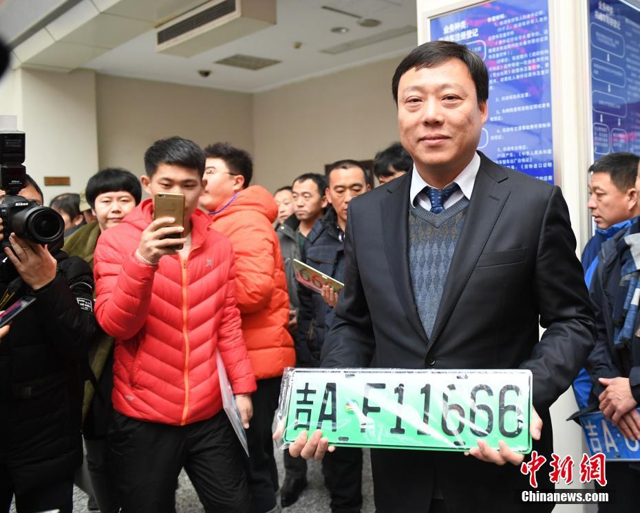 11月20日,吉林省長(zhǎng)春市發(fā)出吉林省內(nèi)第一副新能源汽車(chē)專(zhuān)用號(hào)牌。中新社記者張瑤攝