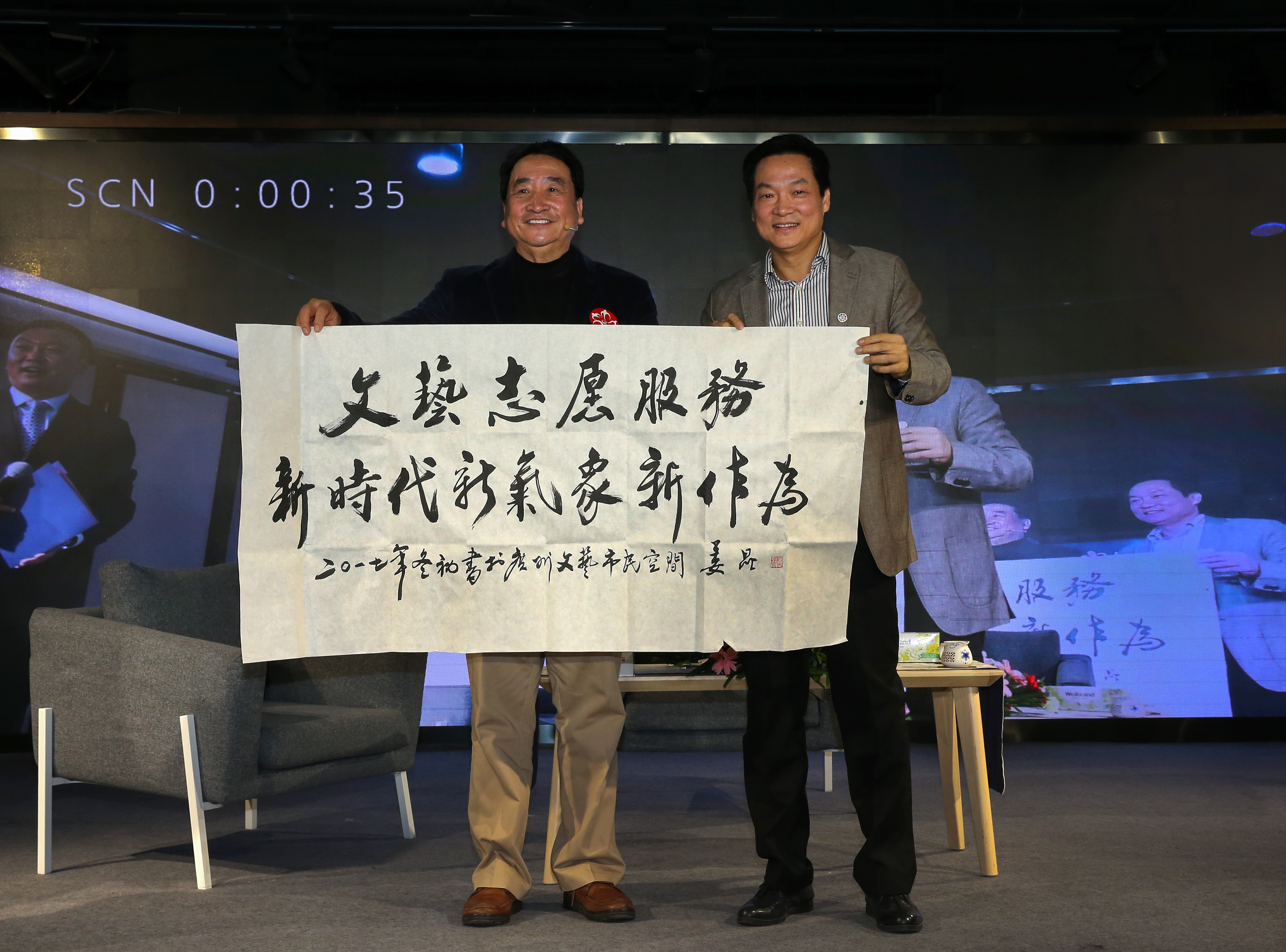 “來(lái)到廣州文藝市民空間,就像到了自己的家?!苯?duì)廣州文藝市民空間感到親切,并為空間揮毫題詞:“最文藝·在一起”“愿廣州文藝市民空間為老百姓送去更多的歡樂(lè)”。