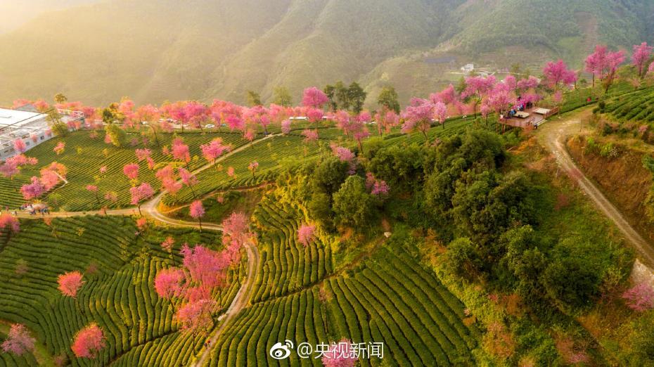 近日,云南大理無量山,2000多畝冬櫻花正值盛花期。漫山遍野的冬櫻花,起伏于綠色茶壟間,美不勝收。這里的冬櫻花花期短暫,卻別有姿態(tài)。央視記者李常明報道圖片來源:央視新聞微博