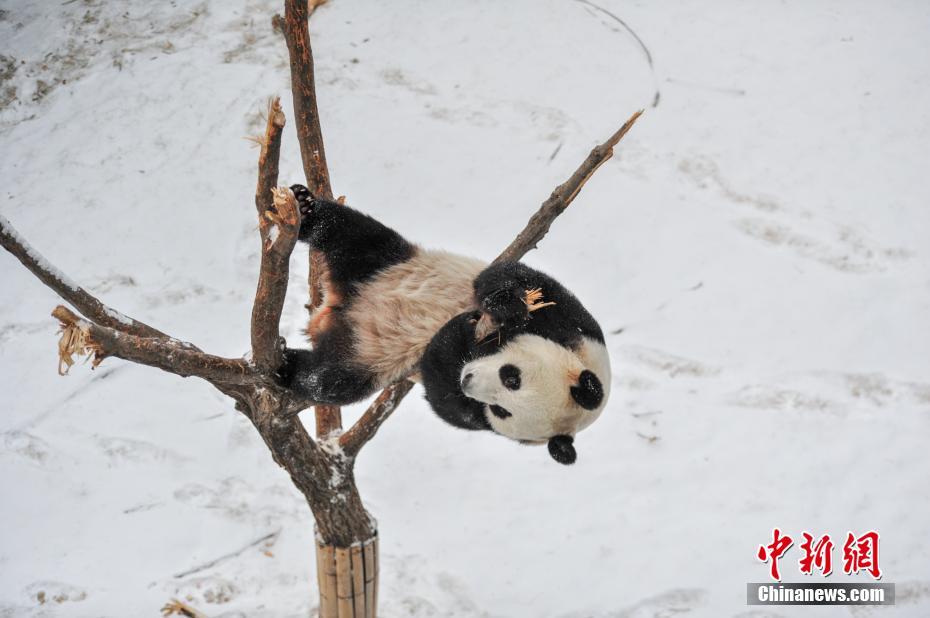 沈陽森林動(dòng)物園“功夫熊貓”雪中顯身手