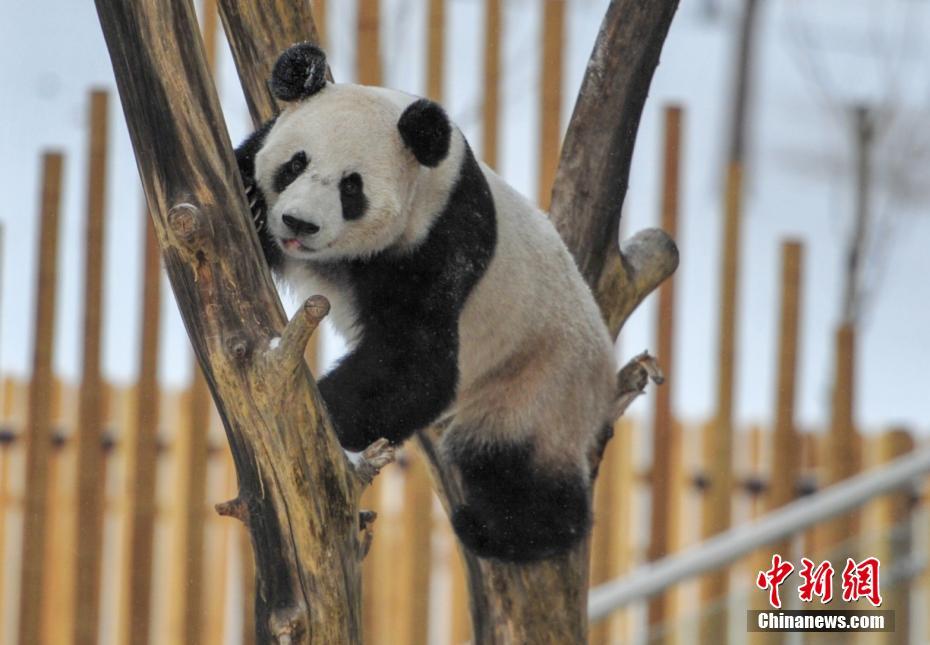 1月8日,遼寧沈陽(yáng)迎來(lái)今年首場(chǎng)降雪,沈陽(yáng)森林動(dòng)物園里的大熊貓打滾戲雪,樂(lè)享雪趣。中新社記者于海洋攝