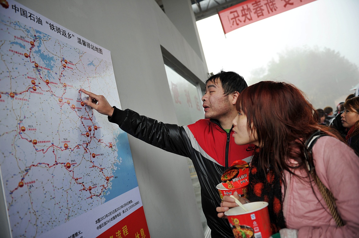 今年春節(jié)期間,中國(guó)石油將開(kāi)放福建、江西、湖北、湖南、廣西五省的近100座加油站,為返鄉(xiāng)鐵騎提供幫助。幫助的內(nèi)容總共有10項(xiàng):免費(fèi)加油、免費(fèi)交通反光背心、免費(fèi)姜湯熱茶、免費(fèi)圍巾、免費(fèi)地圖、免費(fèi)交通意外險(xiǎn)(保額30萬(wàn)元)、免費(fèi)快餐、幫助聯(lián)系摩托車修理、幫助提供手機(jī)充電、幫助提供鐵騎休息點(diǎn)等。