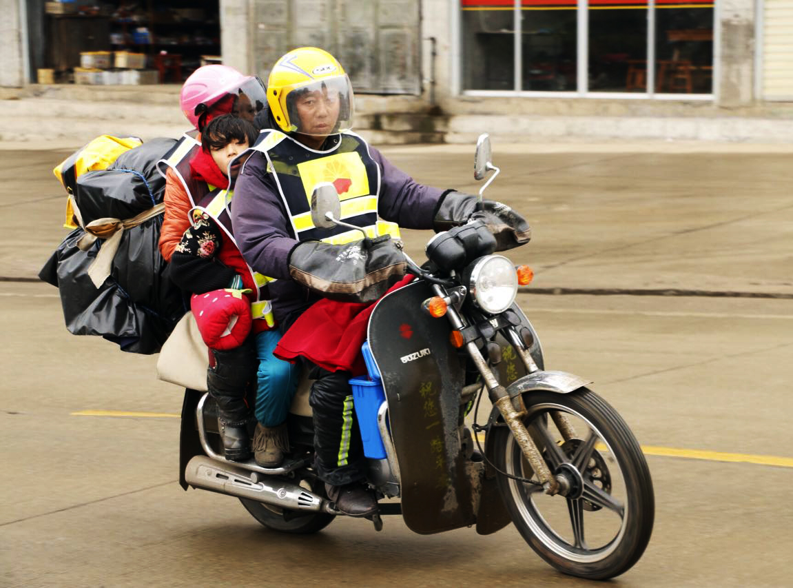 他的老婆孩子搭大巴車回家。選擇鐵騎返鄉(xiāng),主要是希望在老家走親訪友有輛摩托車更方便。謝先生說(shuō),在福建生活過(guò)得挺滿意,過(guò)完年還回泉州工作。