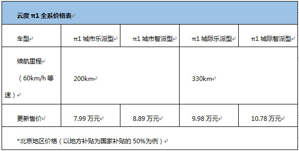 此外,基于本次推出的三年回購計(jì)劃,云度新能源更新了云度π1全系的終端售價,以北京地區(qū)為例: