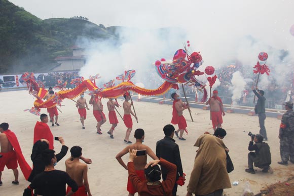 龍燈的節(jié)數(shù)也有講究,一般是七節(jié)、九節(jié)、十三節(jié)和十五節(jié)。七節(jié)象征“七七四十九,生意更紅火”;九節(jié)象征著“久久大吉祥,全家幸福長(zhǎng)”;十三和十五節(jié),象征著“月缺到月圓,家家慶團(tuán)圓”。龍燈要用煙花爆竹燒,象征著日子紅火,越燒越旺,意為紅火的日子越過(guò)越旺。(何毅 胡韻妍 丁一)