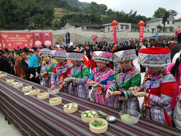 3月18日,四川·興文第三屆玉屏豬兒粑美食文化節(jié)開幕。(何毅 攝)