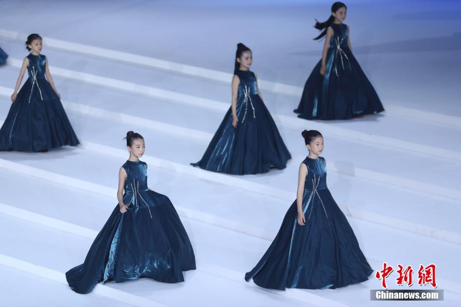 4月1日晚,VICKY’Z·許馨尹時裝發(fā)布會在北京舉行,本季服裝發(fā)布以極光(Aurora)為主題,一千多名小模特登臺表演。中新社記者 盛佳鵬 攝