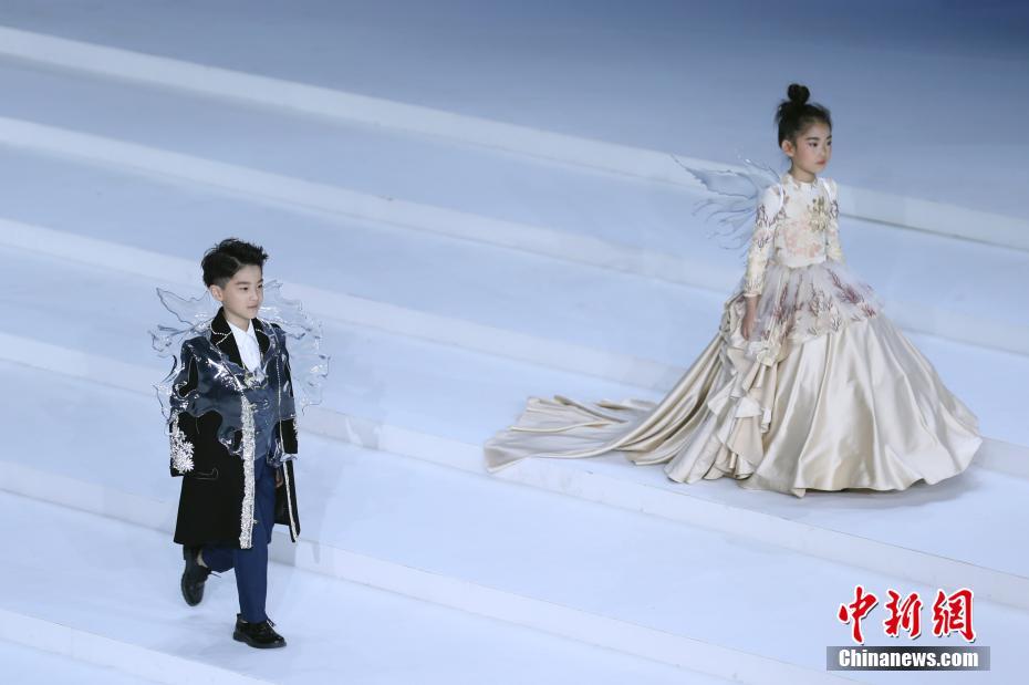 4月1日晚,VICKY’Z·許馨尹時(shí)裝發(fā)布會(huì)在北京舉行,本季服裝發(fā)布以極光(Aurora)為主題,一千多名小模特登臺(tái)表演。中新社記者盛佳鵬攝