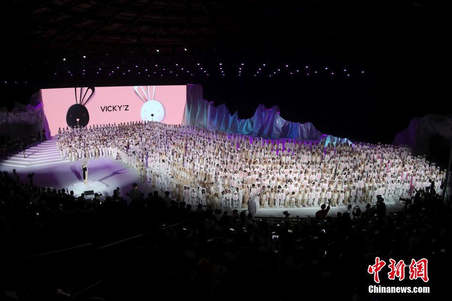 4月1日晚,VICKY’Z·許馨尹時(shí)裝發(fā)布會(huì)在北京舉行,本季服裝發(fā)布以極光(Aurora)為主題,一千多名小模特登臺(tái)表演。參加發(fā)布會(huì)的小模特還進(jìn)行了"最多人裝扮成兔子聚會(huì)"吉尼斯世界紀(jì)錄官方挑戰(zhàn)。中新社記者盛佳鵬攝