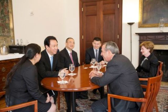 Lawrence S.Bacow校長在哈佛大學歷史最為悠久的建筑Loeb House與許家印一行進行了會談。Lawrence S.Bacow校長表示,恒大是實力雄厚的世界500強企業(yè),非常榮幸能夠邀請到許家印先生成為其履新后首次接待的重要客人。過去五年,哈佛與恒大在多領域的合作中取得了豐碩的成果,對推動科技進步、人類社會發(fā)展作出了積極的貢獻,我們由衷感謝恒大的支持,期待與恒大在更多領域有更深層次的合作。