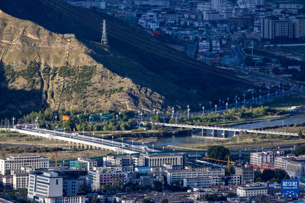 1965年8月25日,橫跨拉薩河的第一座大橋拉薩大橋正式落成通車,結束了當?shù)厝罕娍颗Fしざ珊拥臍v史。如今僅在拉薩市區(qū),就有柳東大橋、青藏鐵路拉薩河特大橋、和美橋、柳梧大橋、連心橋、迎親橋、拉薩大橋、藏熱大橋、納金大橋等眾多大橋跨越拉薩河。拉薩河上的橋梁方便了人們的生活,扮靚了城市的風景,也是西藏經(jīng)濟社會發(fā)展、交通基礎設施建設日新月異的側影。