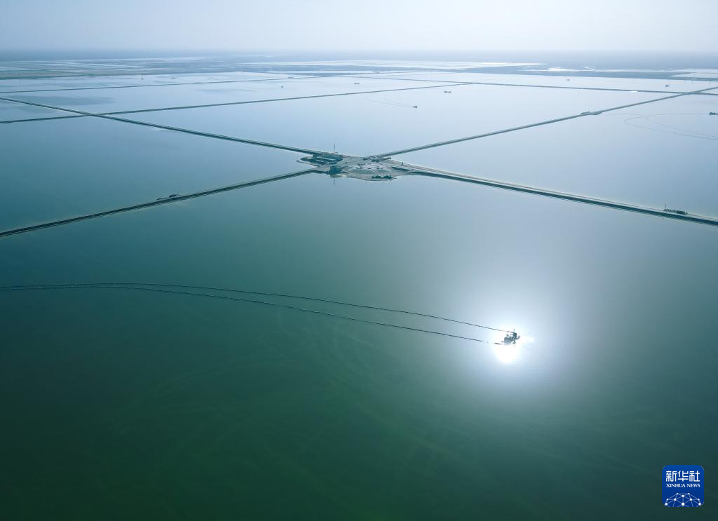 這是3月19日拍攝的青海格爾木察爾汗鹽湖一角(無(wú)人機(jī)照片)。