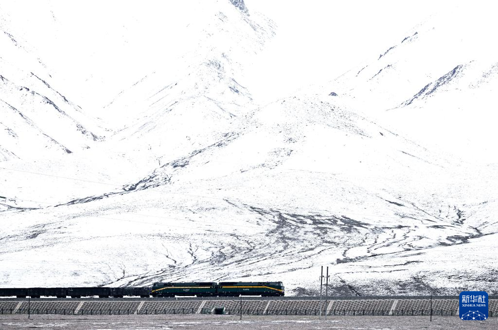 2024年5月27日,列車(chē)行駛在昆侖山下的青藏鐵路上。