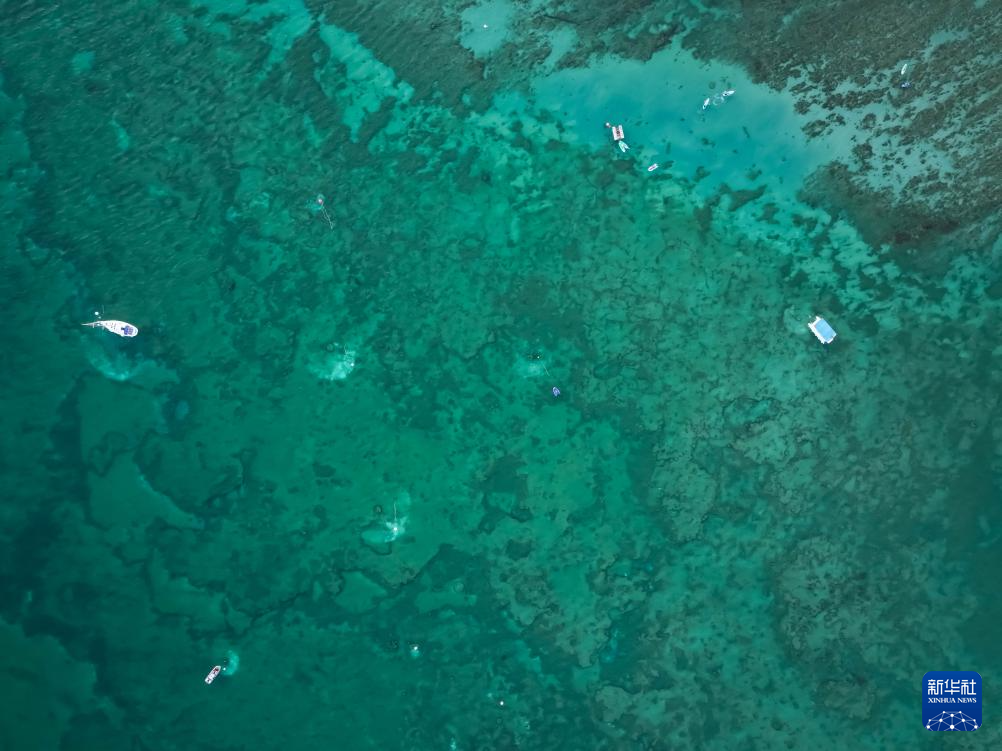 這是8月5日在哈薩克斯坦阿克套拍攝的里海海濱風(fēng)光(無人機(jī)照片)。