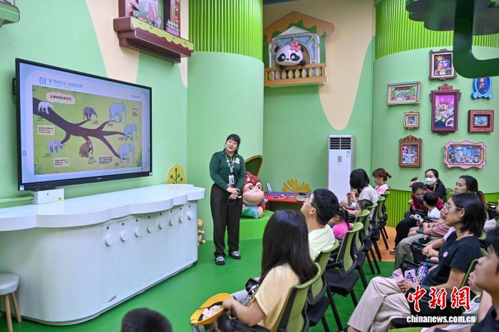 8月12日,廣州長(zhǎng)隆野生動(dòng)物世界舉辦“讓山看見(jiàn)海之走進(jìn)‘象’往的生活”——世界大象日公益活動(dòng),通過(guò)趣味課堂、科普體驗(yàn)等活動(dòng),向游客普及大象的飲食偏好、社群行為等生活習(xí)性。圖為亞洲象科普講師向游客講解亞洲象與非洲象的區(qū)別。中新社記者陳驥旻攝