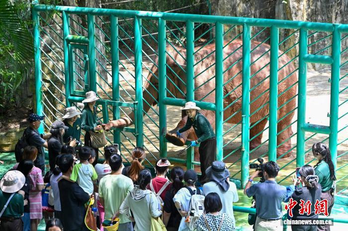 圖為保育員向游客講解大象足部護(hù)理知識(shí)。中新社記者陳驥旻攝