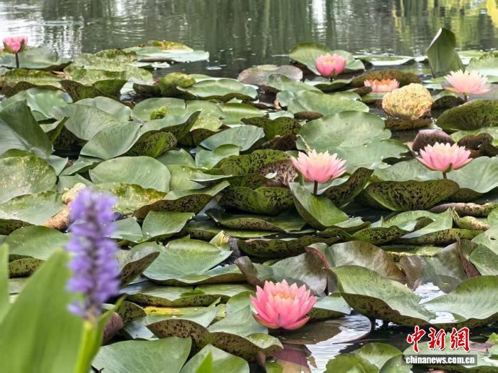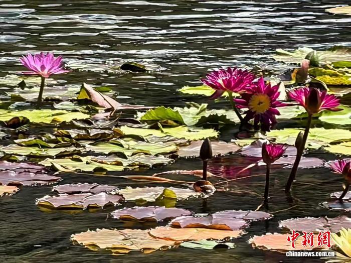 14日,上海辰山植物園內,睡蓮在光影中舒展,風聲與鳥鳴不絕于耳。中新社記者陳靜攝