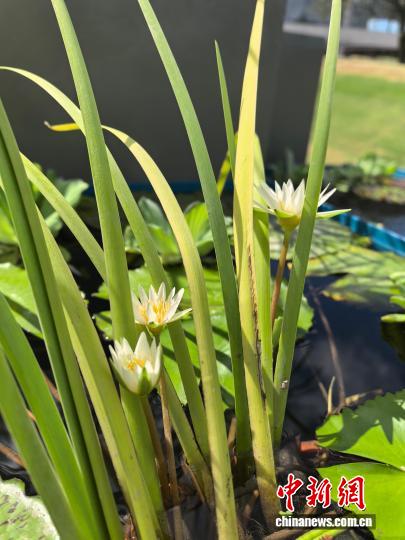 14日,上海辰山植物園內,“侏儒盧旺達”睡蓮與本地睡蓮雜交后培育的迷你睡蓮正在盛開,嬌俏可愛。中新社記者陳靜攝