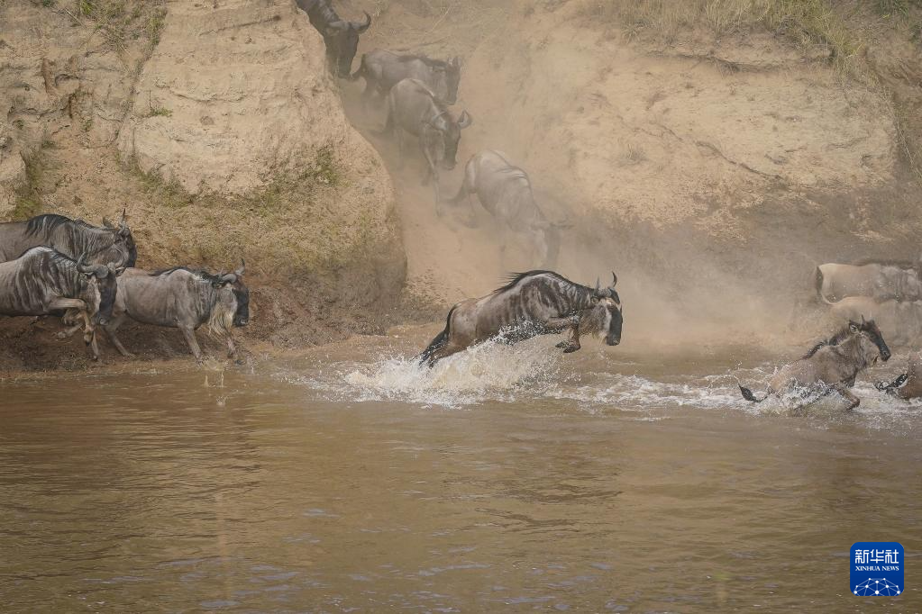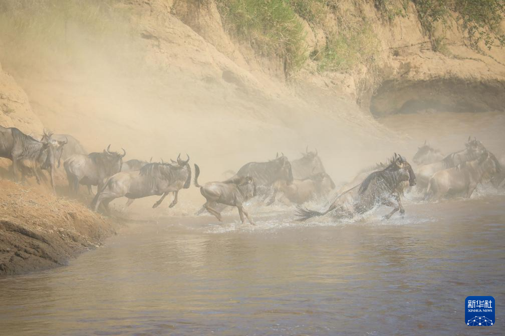 7月30日,在肯尼亞馬賽馬拉國(guó)家保護(hù)區(qū),角馬渡過馬拉河。