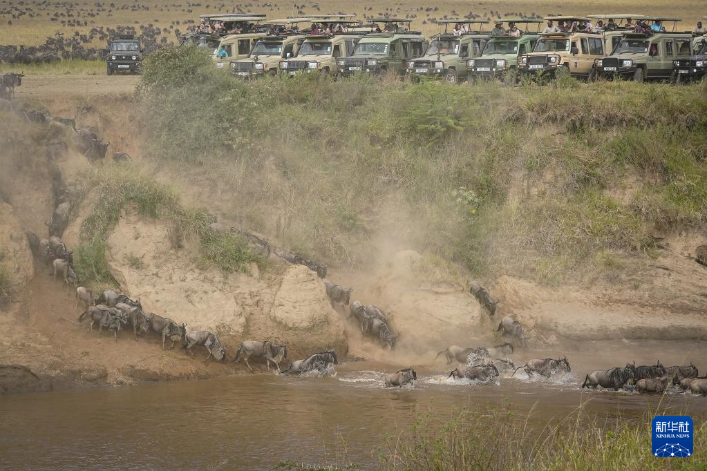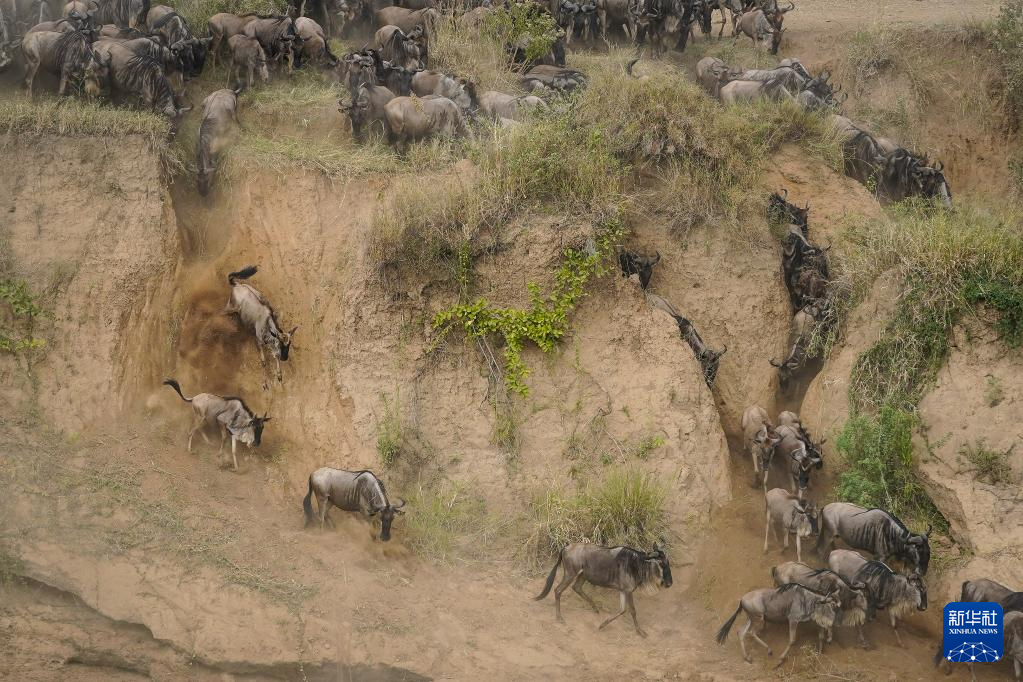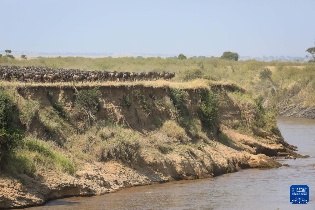 7月30日,在肯尼亞馬賽馬拉國(guó)家保護(hù)區(qū),成群的角馬聚集在馬拉河邊準(zhǔn)備渡河。