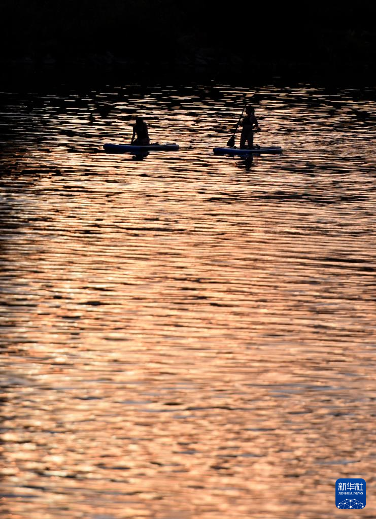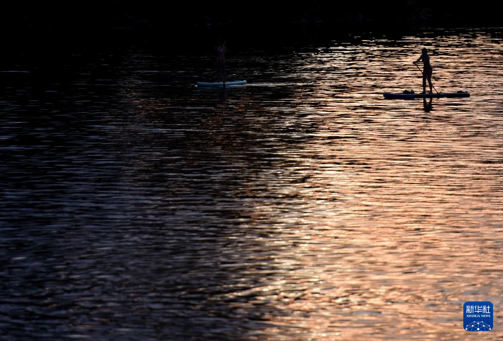 8月20日傍晚,在奧地利維也納,人們在多瑙河上休閑。