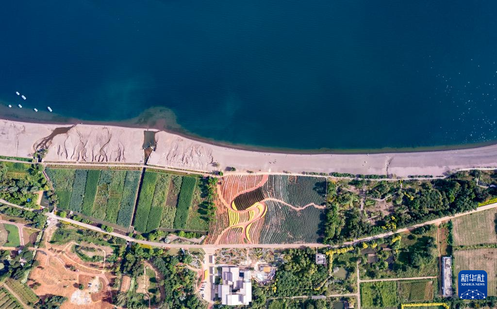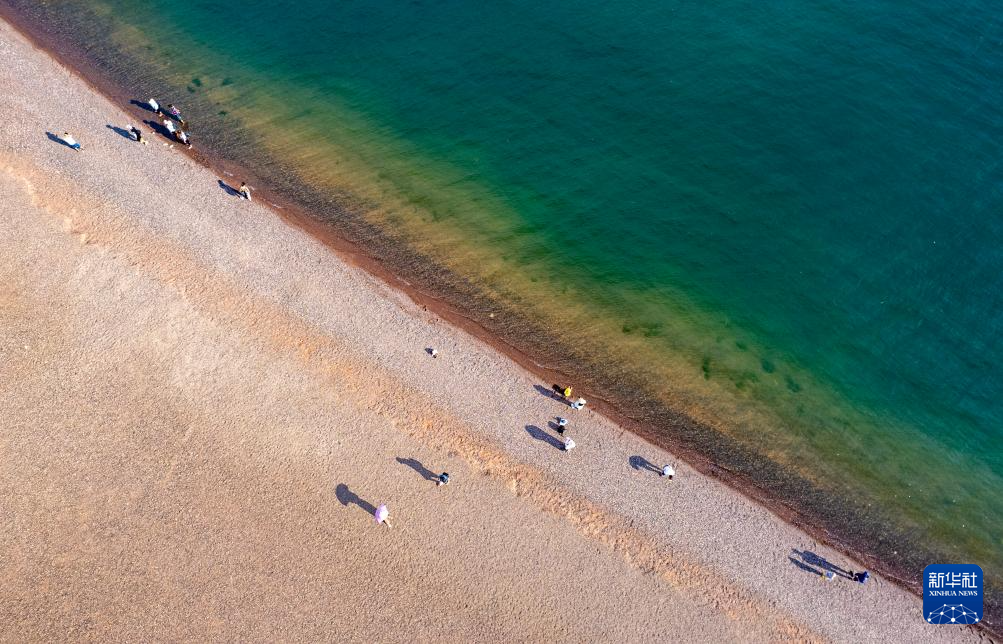 9月8日,游客在撫仙湖畔游玩(無(wú)人機(jī)照片)。