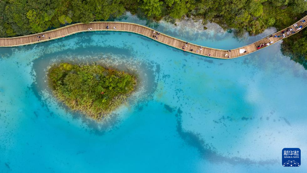 9月8日,游客在藍(lán)月谷游玩(無(wú)人機(jī)照片)。