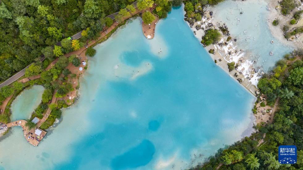 藍(lán)月谷位于云南省麗江市玉龍雪山東麓甘海子以北、云杉坪南側(cè)的山谷之中。9月,藍(lán)月谷湖水充盈清澈,如同一顆顆藍(lán)寶石鑲嵌在山谷之中,吸引游客前來(lái)參觀游覽。