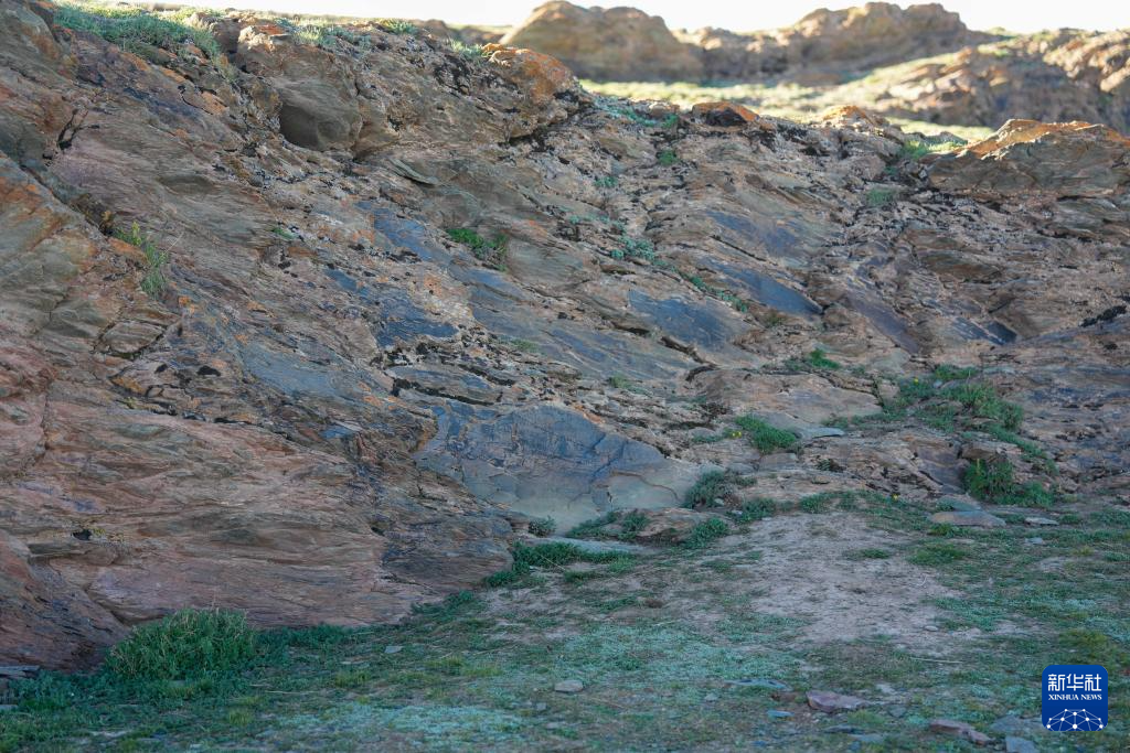 文物考古工作者于2023年7月在青海省瑪多縣扎陵湖畔對尕日塘秦刻石進(jìn)行現(xiàn)場考察時(shí)拍攝的該刻石遺跡照片。