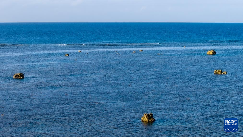 這是2025年3月1日拍攝的黃巖島上幾塊露出水面的礁石(無人機照片)。