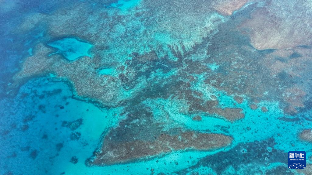 這是2025年3月26日拍攝的黃巖島淺水區(qū)的一片礁盤(無人機照片)。