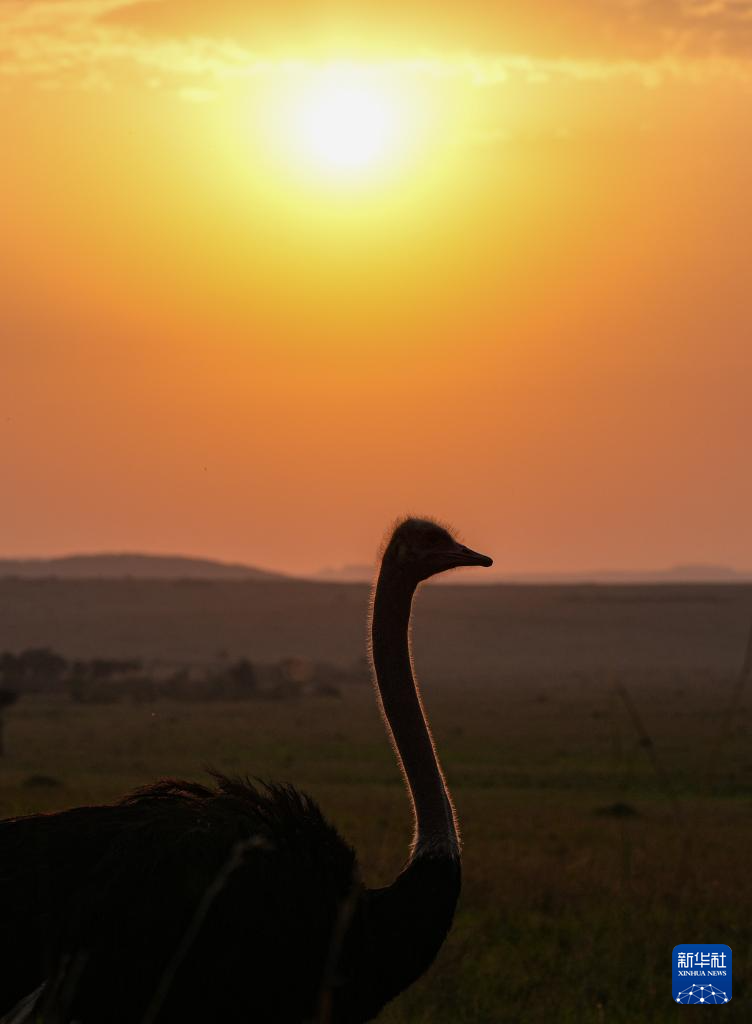 9月6日,在肯尼亞馬賽馬拉國家保護區(qū),一只鴕鳥漫步在夕陽下。