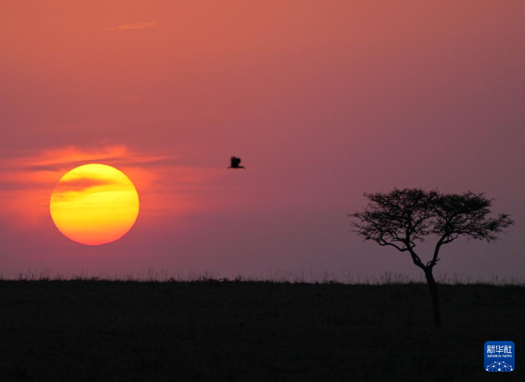 這是9月6日在肯尼亞馬賽馬拉國家保護區(qū)拍攝的落日余暉。