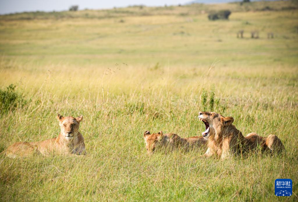9月7日,在肯尼亞馬賽馬拉國家保護區(qū),獅群在草叢中休息。