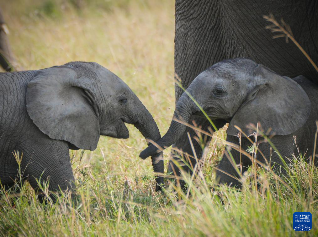 9月7日,在肯尼亞馬賽馬拉國家保護區(qū),兩頭小象在嬉戲。