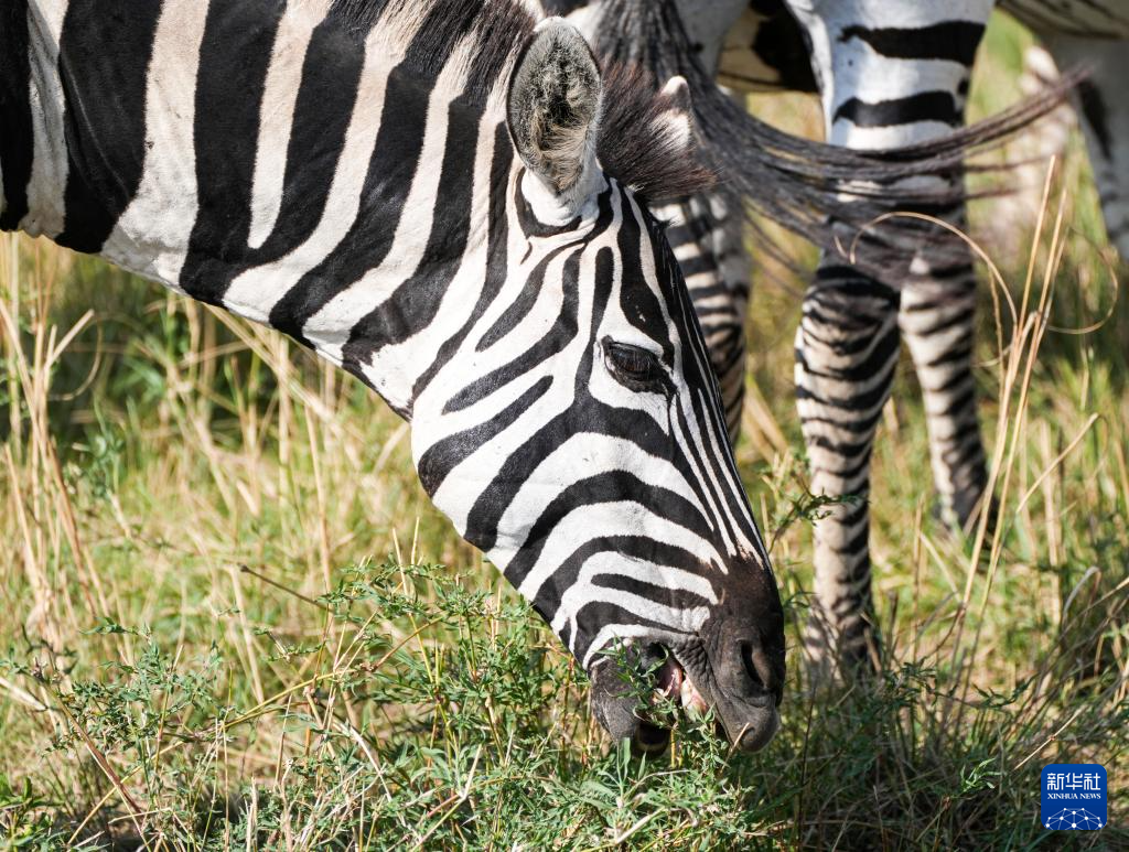 9月6日,在肯尼亞馬賽馬拉國家保護區(qū),一只斑馬在進食。