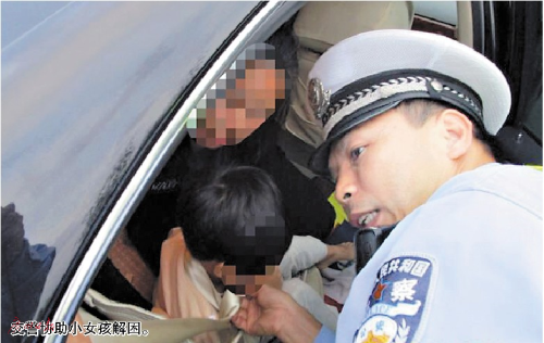 一女童乘車(chē)時(shí)被安全帶勒脖 幸交警及時(shí)割斷安全帶解救