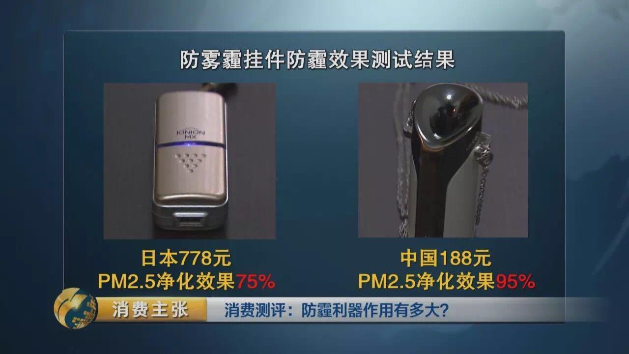 最終,試驗結(jié)果顯示,日本這款778元的防霾掛件PM2.5凈化效果僅為75%;而中國這款188元的防霾掛件PM2.5凈化效果達到了95%。