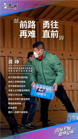 在采訪(fǎng)中,楊乾輝頻頻提及許多普通康師傅員工及經(jīng)銷(xiāo)商同仁的名字,這其中,有三次前往疫情最重的醫(yī)院運(yùn)送支援物資的武漢經(jīng)銷(xiāo)商王晨、田婷夫婦,有主動(dòng)請(qǐng)纓參戰(zhàn)、大年初三頂著寒風(fēng)騎了一個(gè)半小時(shí)自行車(chē)回到工作崗位的廠(chǎng)務(wù)科員黃海,有獨(dú)自連夜驅(qū)車(chē)百余公里從新洲趕回武漢,寒風(fēng)中從凌晨忙到深夜的員工羅杰。提及此,楊乾輝希望借記者之筆向他們說(shuō)一聲“辛苦了”:“每一次支援行動(dòng)背后都有許多感人的故事,還有很多不愿提及姓名的志愿者們。感謝所有為抗擊本次疫情做出貢獻(xiàn)的人,感謝參與‘出征護(hù)航健康是?!挂咧г袆?dòng)的康家人及愛(ài)心團(tuán)隊(duì),一句‘辛苦了’不足以道出我們內(nèi)心的真切!把渺小的力量匯聚成海洋,我們終將抵達(dá)勝利的彼岸?!?/p>