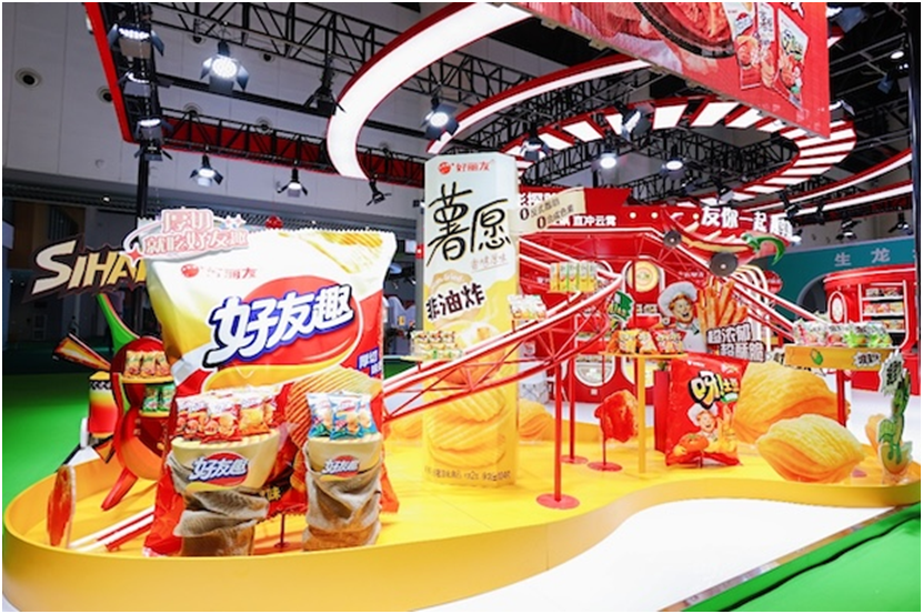 今年糖酒會全面升級為“春糖節(jié)”,開創(chuàng)國內(nèi)展會“全城辦展”先河。豐富多彩的展城融合活動,讓春糖的影響力進一步提升。好麗友的主展位位于西博城11號館休閑食品展區(qū)。熱情洋溢的品牌紅、充滿樂趣的“游樂場”、琳瑯滿目的新產(chǎn)品讓好麗友展位成為西博城展區(qū)的“顯眼包”,吸引現(xiàn)場嘉賓駐足流連,一探究竟。