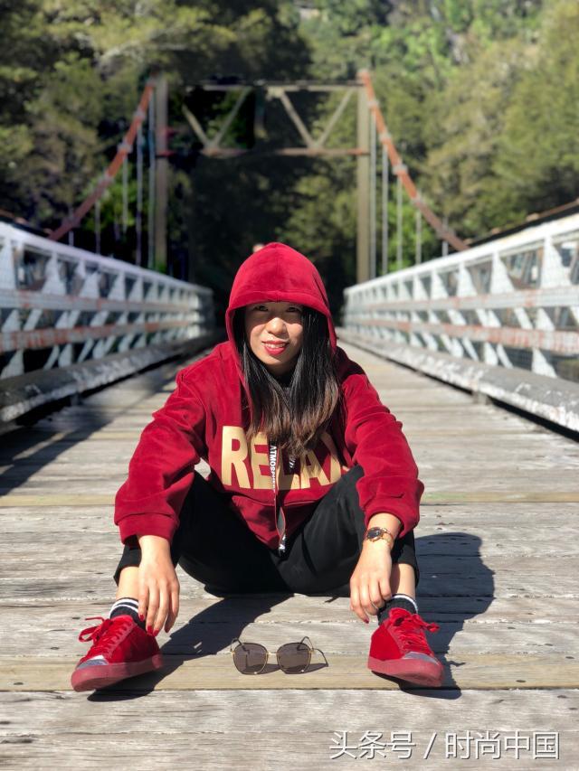 LuLu屬于那種外表很瘦很酷但是其實(shí)很逗比的女生,照片取景地是新西蘭Wilford峽灣。原圖中,紅色毛衫與同色絲絨板鞋上下呼應(yīng),褲子則選擇黑色調(diào)和,紅與黑都是醒目的顏色,非常上相,帽衫和休閑鞋的搭配減少了這兩種顏色在一起的凝重感,反而,時(shí)尚范兒的紅黑搭,更能體現(xiàn)出一種設(shè)計(jì)上的簡(jiǎn)約性和特別的氣質(zhì)。當(dāng)然,DW金色鏈表與紅手繩的混搭,也是非常值得推崇的。
